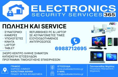Συναγερμοί σπιτιών, Κάμερες ασφαλείας, Συναγερμοί επιχειρήσεων, Συστήματα κλειστού κυκλώματος (C.C.TV), Θυροτηλεοράσεις, Ηλεκτρονικά είδη, Υπολογιστές, Κινητά, Service – Επισκευές κλπ.